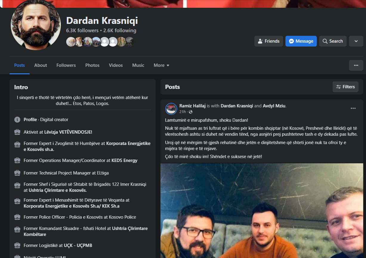 Tashmë, Krasniqi ka paralajmëruar se pas dy ditësh do të lëshojë Kosovën. Postimi i fundit i tij në facebook është i një shokut të tij.